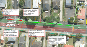 These corridors are high-traffic, community-sensitive environments with constrained working space, dense utilities and limited access. Asset condition, operational performance, flooding behaviour and capacity constraints were assessed using an integrated evidence base combining asset inspections, modelling outputs, service requests (RFS), condition data and operational insight.